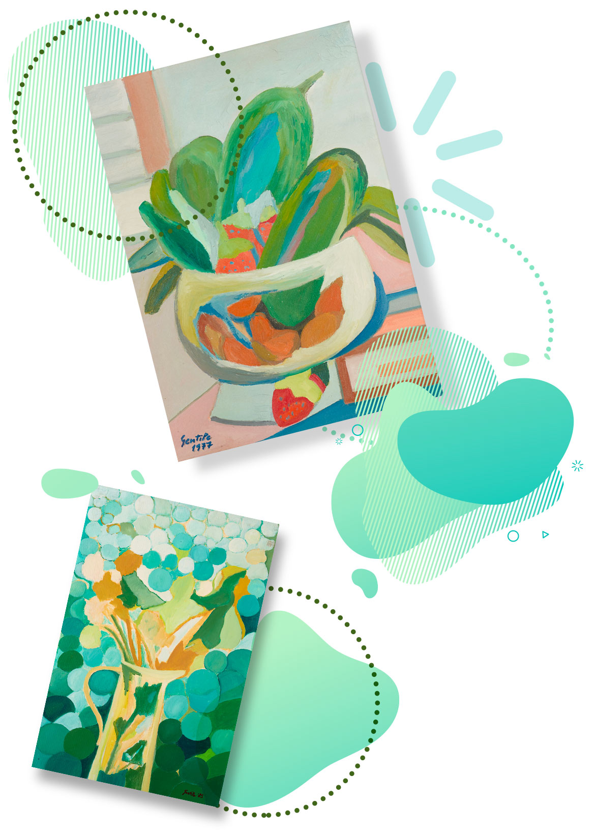 È un clima di nitida percezione lirica, suggestivo, misterioso e melanconico, che effettivamente potrebbe in qualche caso richiamare il senso universalmente accreditato del naif, ma le cose si fermano qui. Direi infatti che Gentile è semplicemente sé stesso e sarebbe ben arduo, se non si vuole restare superficiali, attribuirgli ascendenze ed appartenenze stilistiche precise. Questa sua vocazione lirica ha difatti una singolare valenza simbolica, soprattutto quando si manifesta dando forma a materiali emozionali curiosamente “astratti”, che si direbbero ispirati ad una costante memoria di Fernand Léger: derivazione capace di rintracciare relazioni tra il geometrismo più decorativo e le forme più sofisticate della ricerca figurativa moderna. È curioso, infatti, il rapporto che l’artista riesce a stabilire tra garbata citazione “realista”, da una parte, ed esempi particolarmente avanzati d’avanguardia, dall’altra.